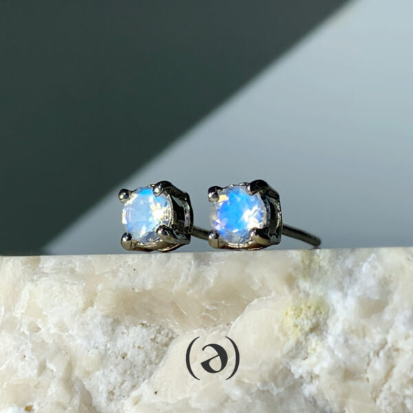 Rainbow Moonstone in Silver 925 (White gold) | ใครชอบต่างหูเพชร เรียบ เเต่ไม่เหมือนใครแนะนำตัวนี้เลนค่า เรนโบว์มูนสโตน ประกายฟ้าน้ำเงิน ไม่ซ้ำใคร เเละ ไม่มีใครเหมือนจ้า RARE สมชื่อร้าน